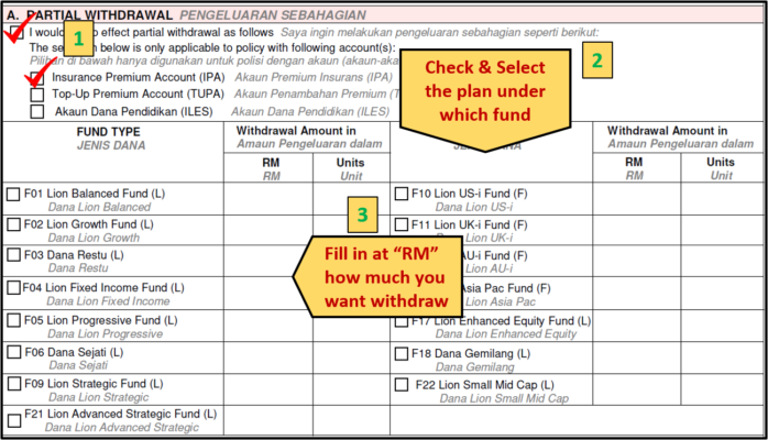 Partial Withdrawal minimum withdraw RM 2000